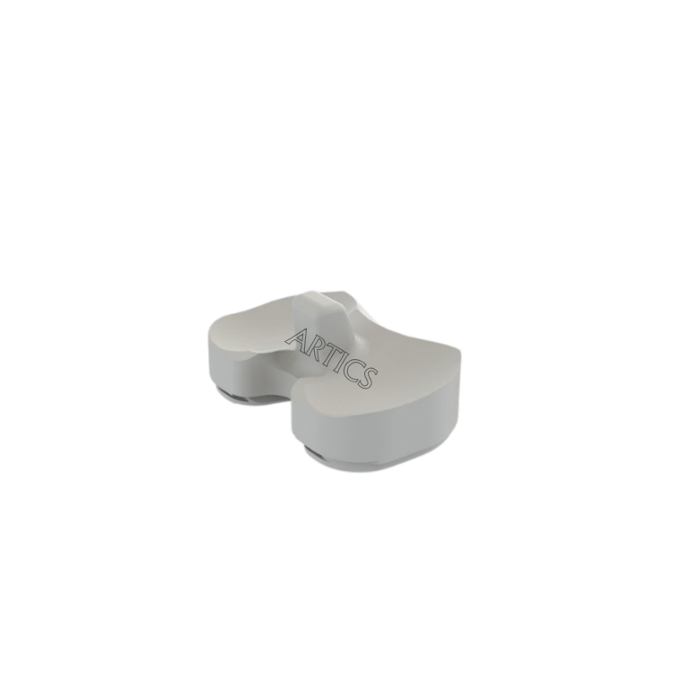 The ARTICS Hinge Tibial Insert is an essential part of the Hinge Knee Replacement System, designed to fit between the tibial plate and the femoral component. It ensures smooth articulation, stability, and durability for patients with severe knee conditions.
